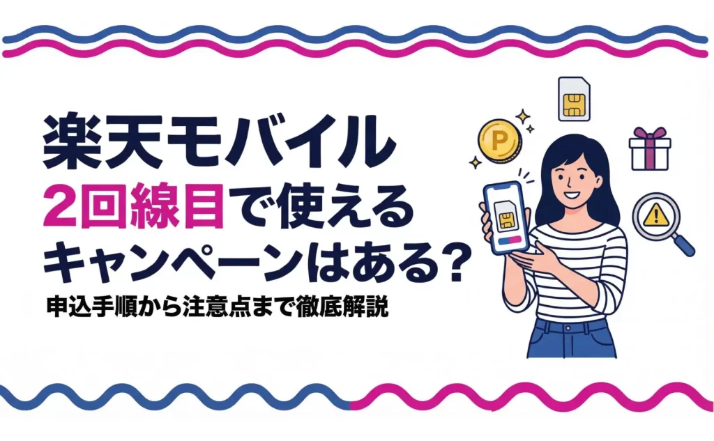 「楽天モバイルの2回線目でもキャンペーンは使える?」 「申し込みで損をしない手順はどれ?」 楽天モバイルは、契約数1,000万回線以上の人気の通信サービスです。※2025年12月時点 月額1,000円〜3,000円台というコスパの良さから、子ども用の回線やサブ回... -
