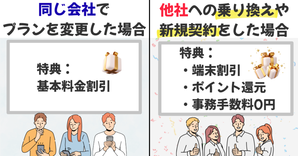乗り換えや新規契約の方が、受け取れる特典が多い傾向にあるためです。