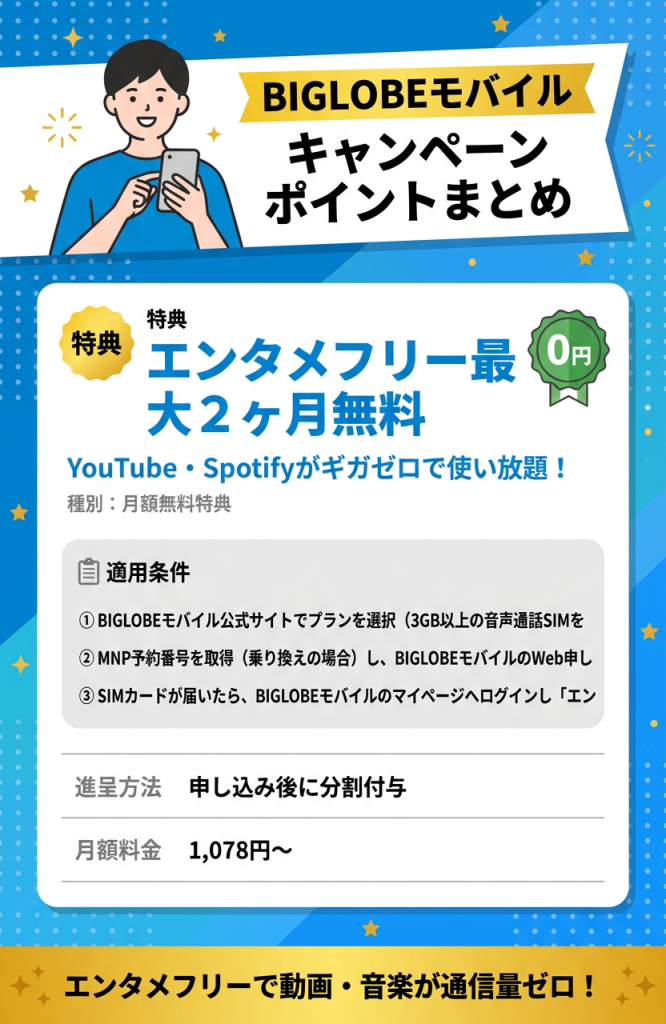 | キャンペーン名 | 特典内容 | 主な適用条件 | 付与タイミング |