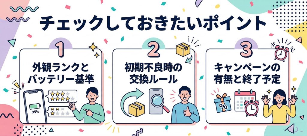 Apple公式のiPhone整備済製品や、ドコモのdocomo Certified、auのau Certifiedなどは、厳しい検査をクリアしており、保証も付いています。一般的な中古店よりも信頼性が高く、安心して利用できるでしょう。