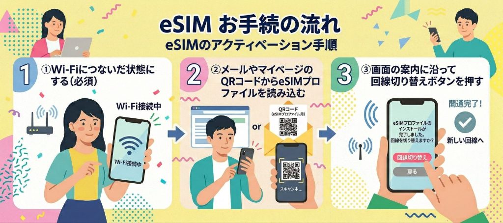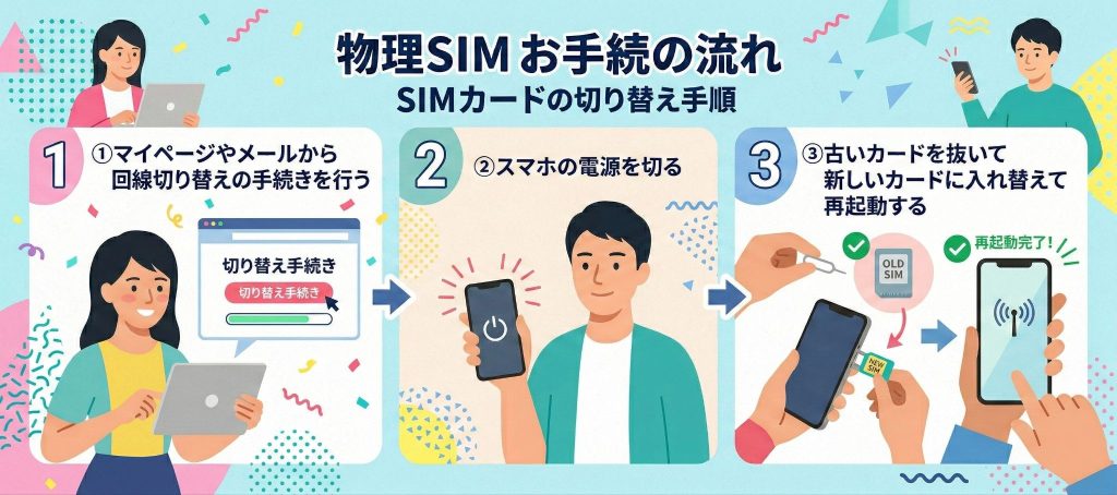 第3ステップ:SIM到着後またはeSIM発行後に回線を切り替えて開通する