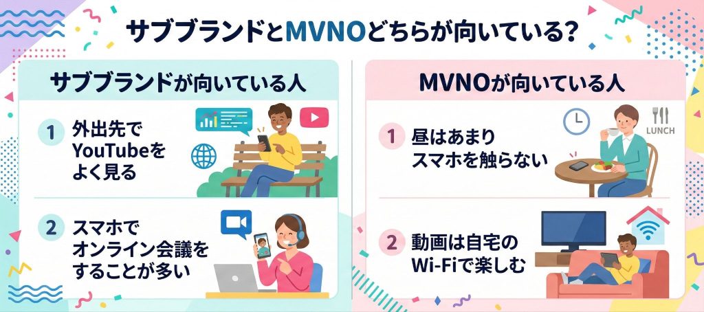 スマホを使うタイミングは主に夜で、Web閲覧とLINEが中心であれば、MVNOでもほとんど困らない場合もあります。