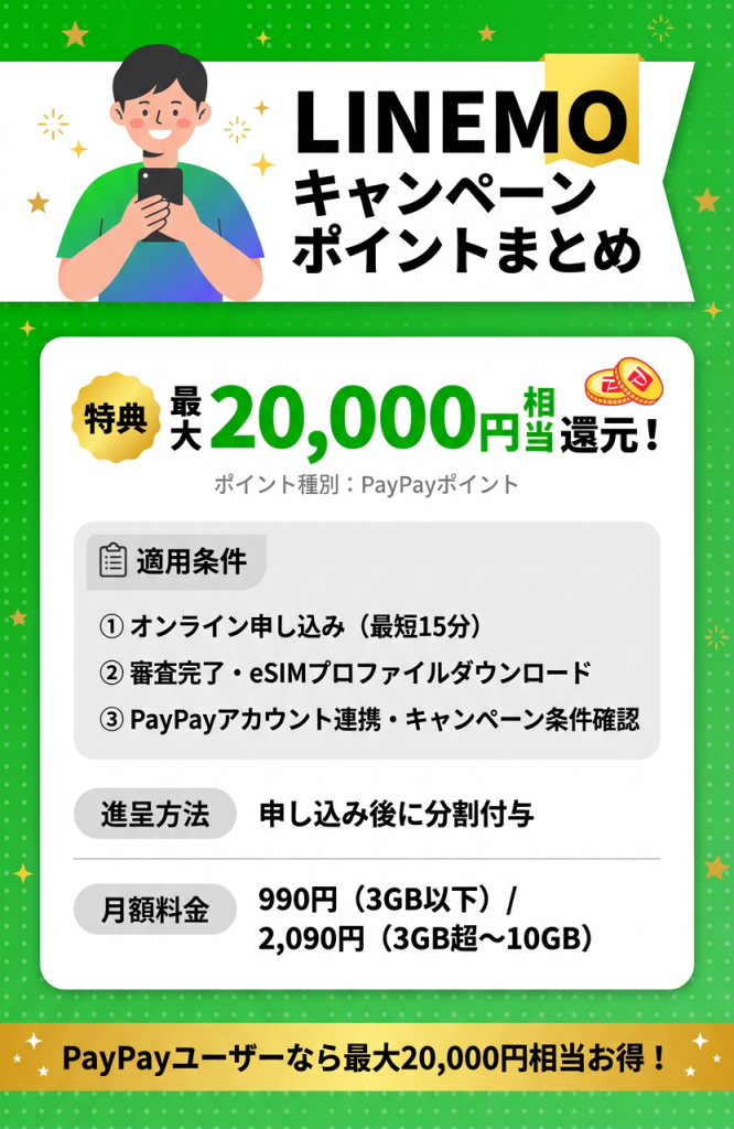 - LINEMO|乗り換えで最大14,000円相当のPayPayポイント還元