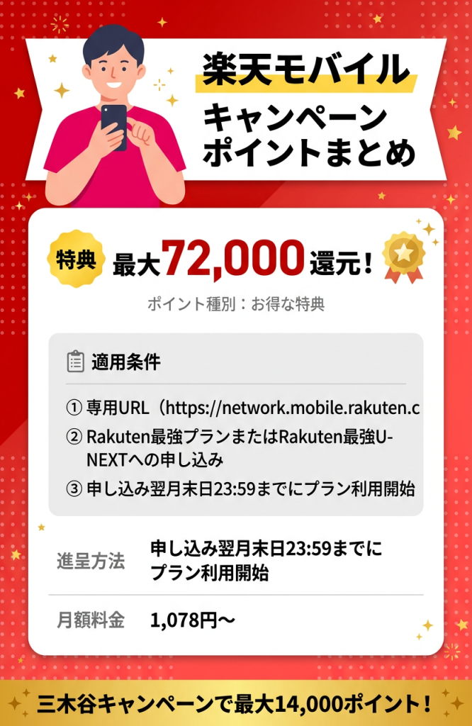 - 楽天モバイル|条件満たせば7,000~最大4万円相当の楽天ポイント還元