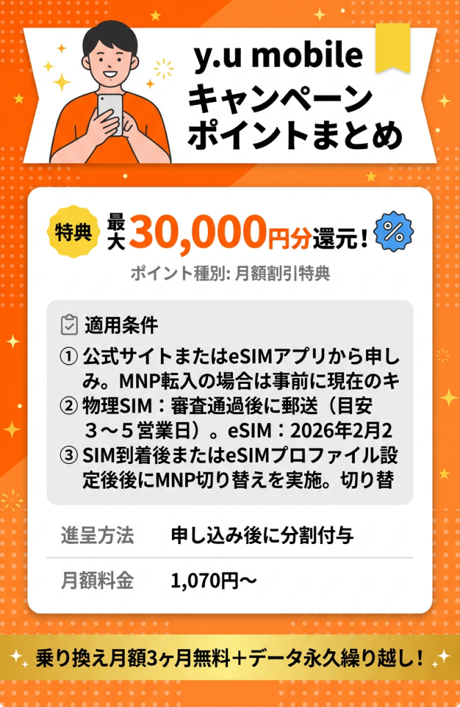 - シンプル3 Sプランも2026年3月31日まで20,000円相当に増額中なので、データ容量5GBで十分な方にもおすすめ