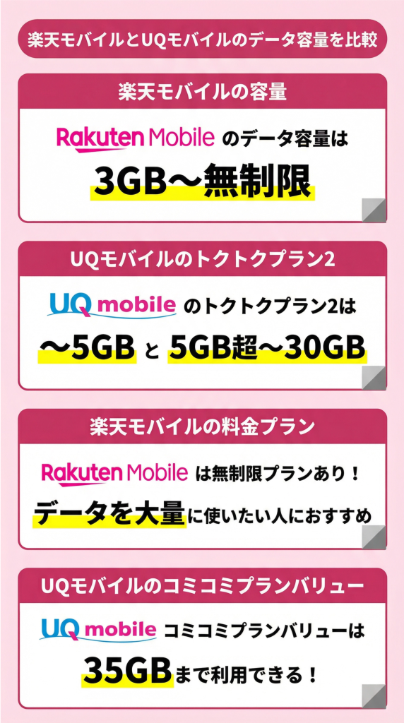 楽天モバイルとUQモバイルを徹底比較【2026年2月最新】どっちがいい?おすすめな人まとめ