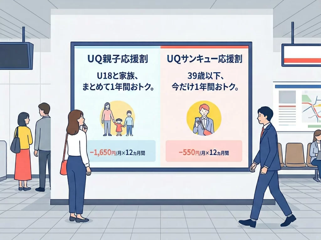 UQ親子応援割」で翌月から1年間、毎月1,650円(税込)割引!