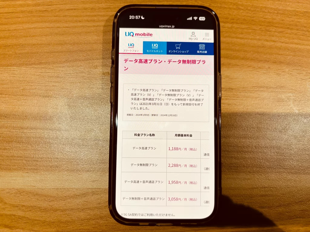 UQモバイルには、データ無制限プランがありましたが、現在新規受付が終了し新プランに移行しています。