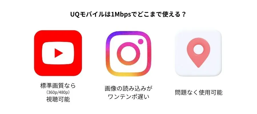 1Mbpsあれば、スマホでのYouTube標準画質やSNS、音楽配信などは工夫次第で楽しめます。