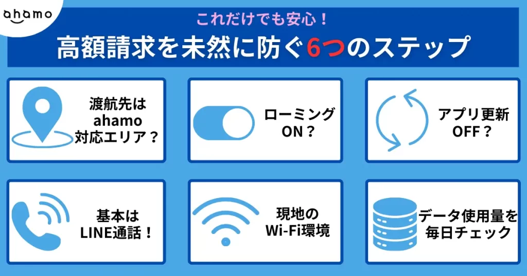 紹介する6つのステップを実践すれば、高額請求や通信のトラブルを事前に避けられるはずです。