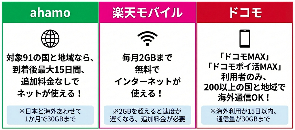 - モバイルデータ通信の回線は日本で使用している回線を選ぶ
