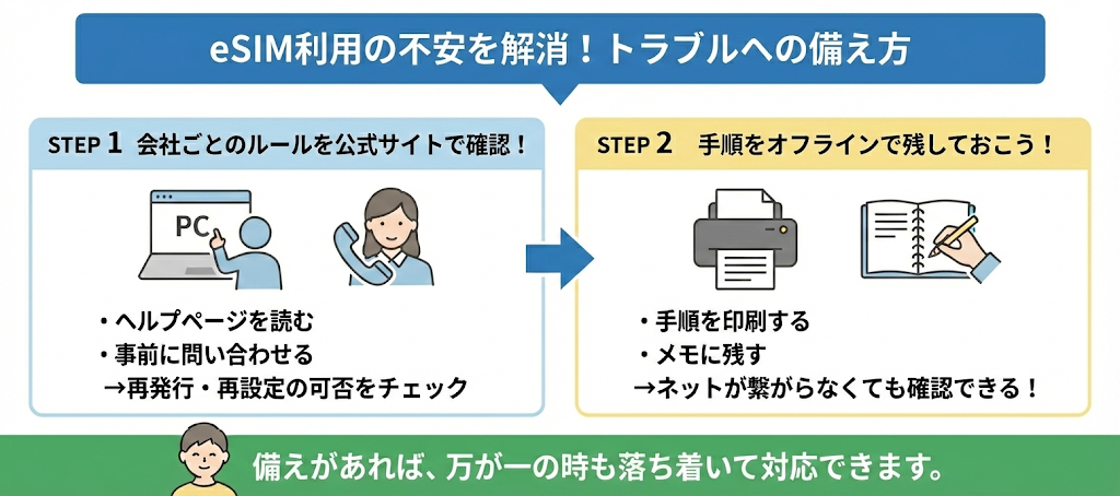 eSIMを利用する場合は「日本にいる間に購入とインストールを済ませておくこと」が、失敗しないための最大のポイントです。