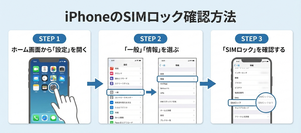 iPhoneにSIMロックがかかっているかどうかを確認する方法は、以下のとおりです。