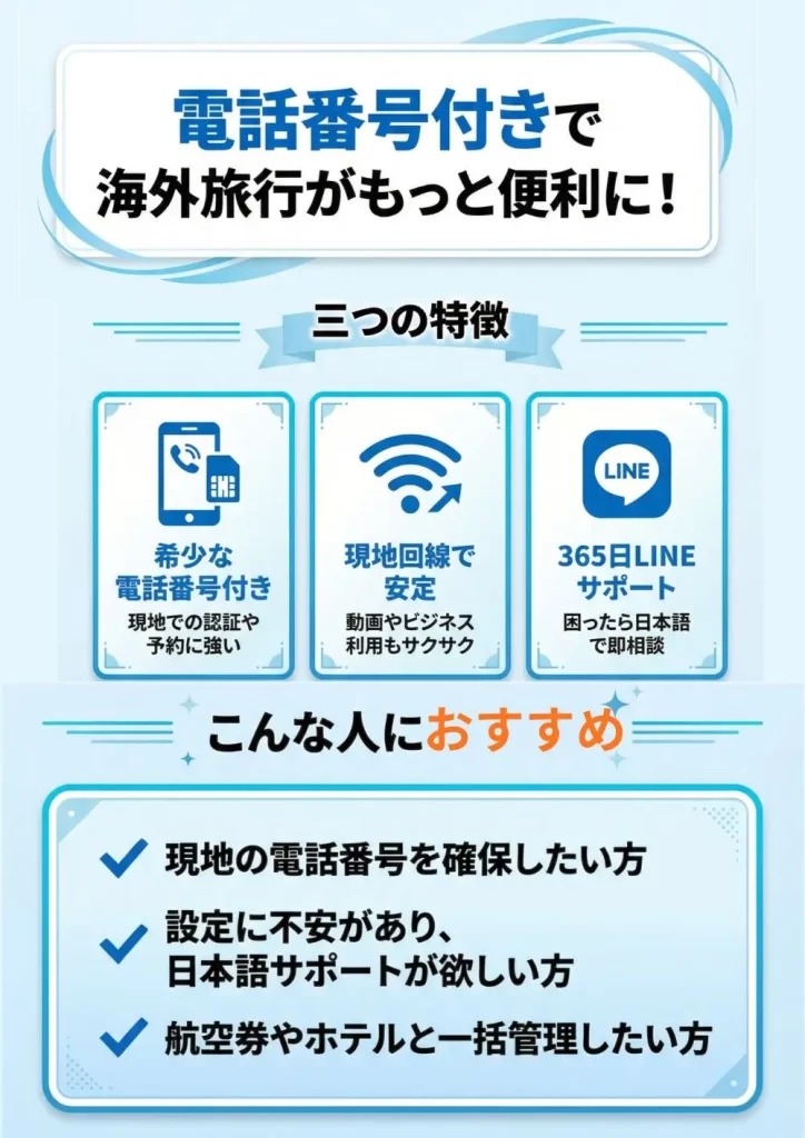 | 提供形態 | 渡航先用の データ通信eSIM ※音声通話やSMSは原則なし |