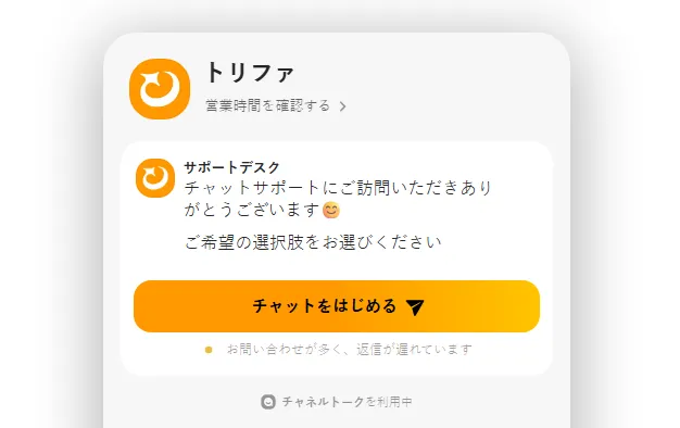 | 問い合わせ窓口 | 利用者向け:チャットボット(24時間365日) メール:support@trifa.co.jp |