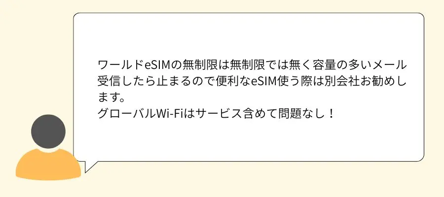 ここまで読んでも、「World eSIMを使って本当にいいのだろうか」と悩む人がいるはずです。
