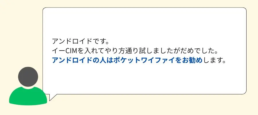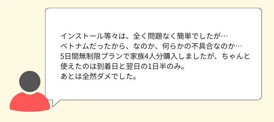 iPhone×メジャー地域のように条件が揃うと「設定も簡単で普通に使える」「安くて便利」と評価されやすい一方、Androidやマイナー地域では設定・通信の相性でつまずきやすく不満につながりやすいことがわかりました。