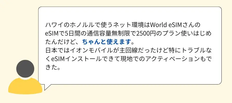World eSIMの設定や使い勝手が「簡単だった」「手軽だった」という声は、iPhoneで事前に準備を済ませ、到着後は切り替えるだけだったケースに多いようです。